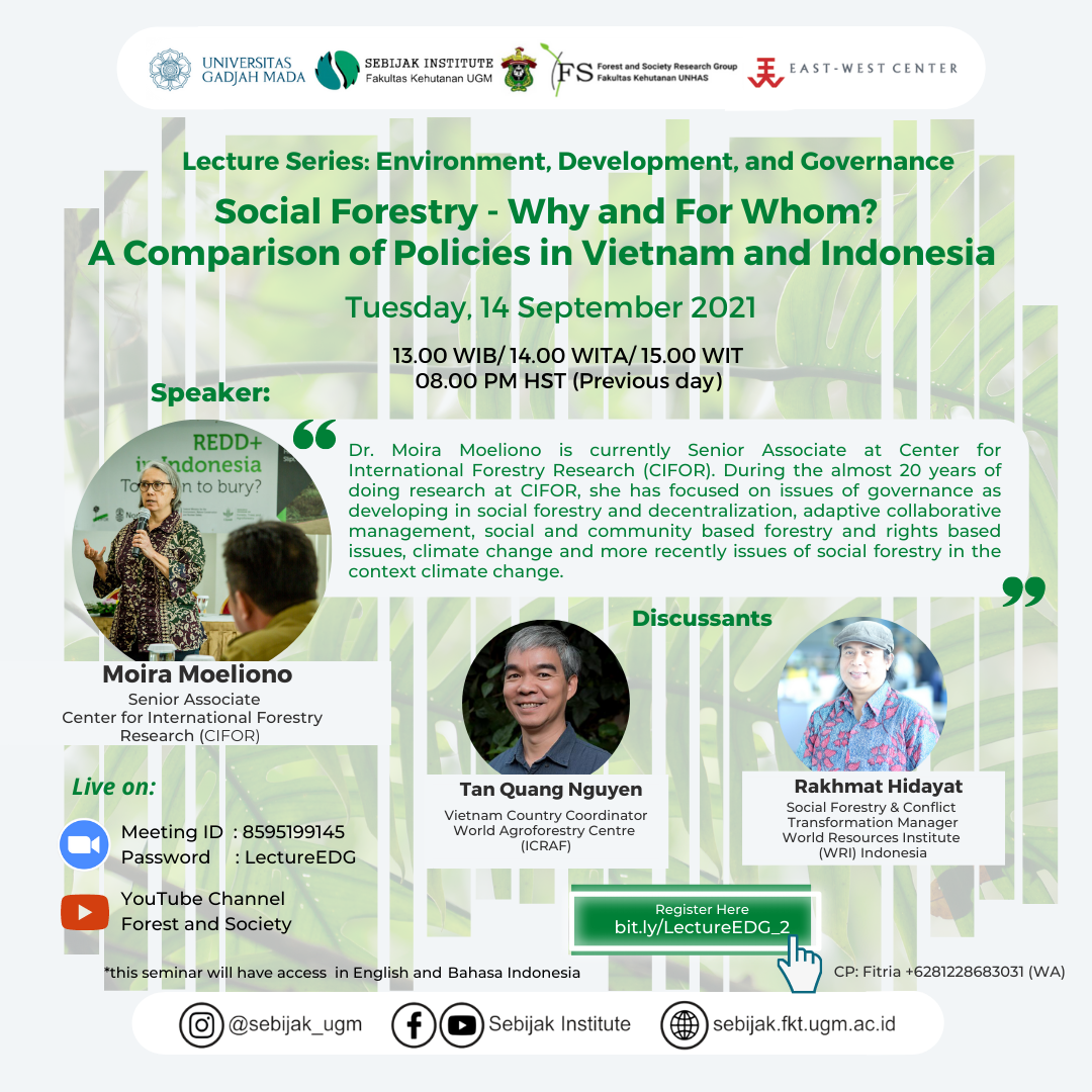 Sep142021coursesSeptember 14, 2021 Share this post Share on WhatsAppShare on WhatsApp Share on LinkedInShare on LinkedIn Pin itShare on Pinterest TweetShare on Twitter Share on FacebookShare on Facebook Author: forestsociety https://forestsociety.unhas.ac.id Related PostsSmallholder Definitions, Present and Futures: Agriculture & AquaqultureFebruary 6, 2023The Contentious Politics of Palm Oil Expansion: Collusion, Conflict and ActivismMarch 25, 2022Pra Kongres Dewan Kehutanan Indonesia VII Regional SulawesiDecember 16, 2021Reformasi Agraria Pada Sektor KehutananNovember 18, 2021